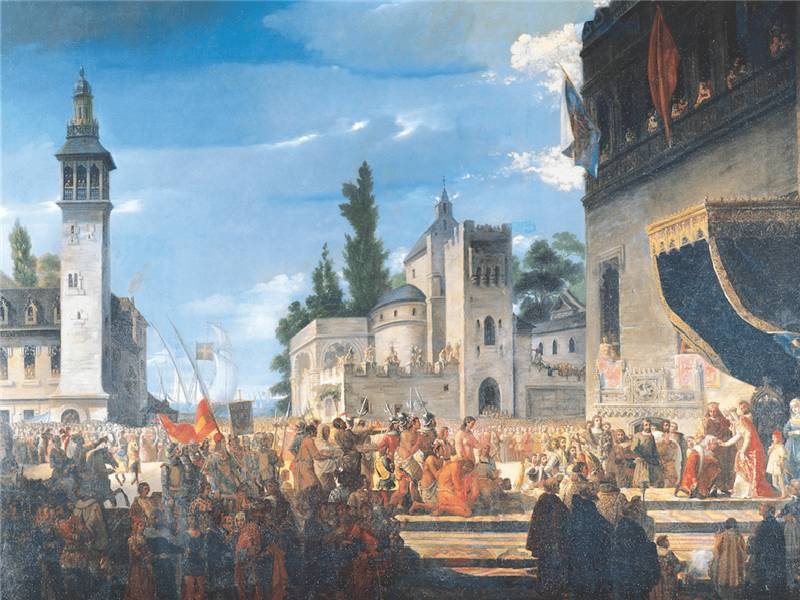 Los cronistas de la época narraron que, a la llegada de Colón a Barcelona a mediados de abril de 1493, «los Reyes Católicos le esperaban públicamente, con toda la majestad y grandeza».