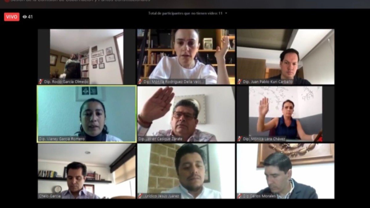 La Comisión de Gobernación y Puntos Constitucionales aprobó por unanimidad en lo general el Proyecto de Dictamen para reformar y adicionar los artículos 2, 22, 71, 81,115 y 163 de la Ley Orgánica del Poder Legislativo, en materia de sesiones a distancia, tanto en el Pleno como en los diversos órganos legislativos del Congreso del Estado.