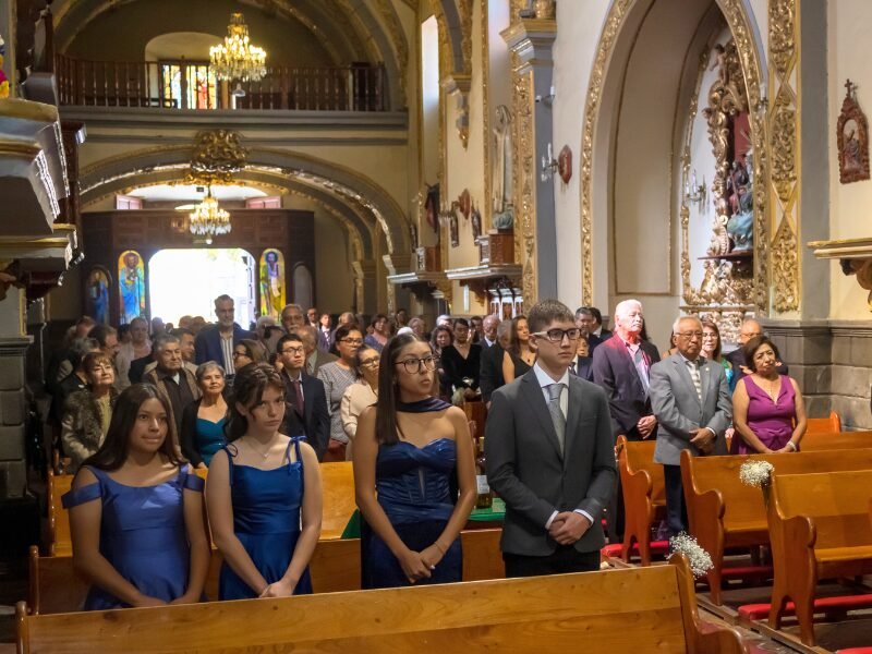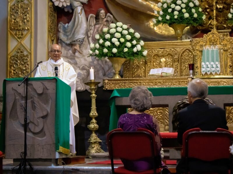 Durante la homilía, el sacerdote que ofició la misa en la Parroquia de Santiago destacó que el matrimonio de Virginia Ponce y José Luis Gutiérrez es ejemplo vivo de que el amor verdadero se construye día a día con respeto, fe y compromiso.