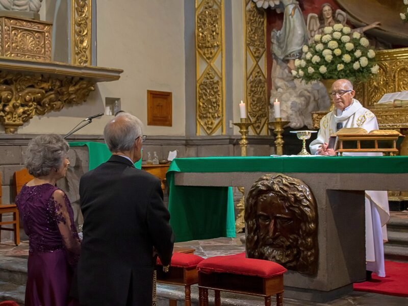 La emotiva ceremonia religiosa se llevó a cabo en la Parroquia de Santiago, donde la pareja renovó sus votos en medio de oraciones, miradas cómplices y el aplauso de familiares y seres queridos que han sido testigos de su sólida unión a lo largo de seis décadas.