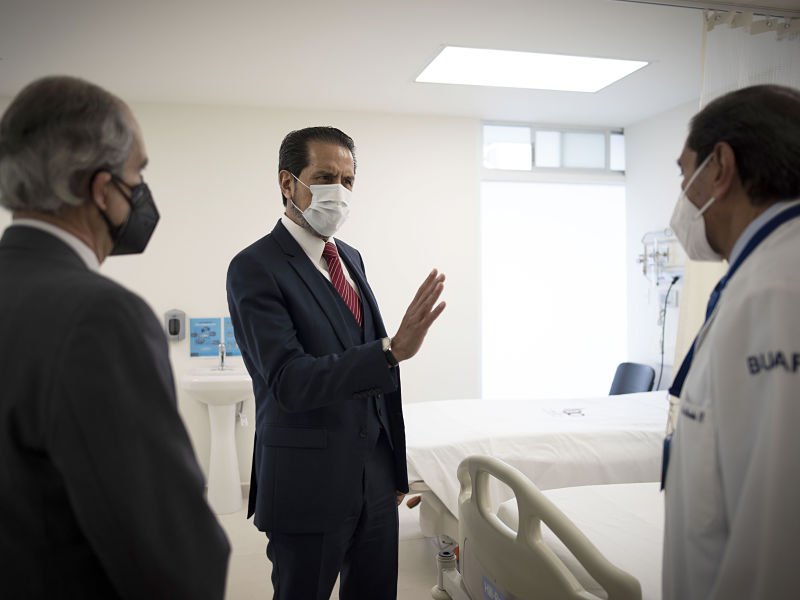 Alfonso Esparza, rector de la BUAP, recorre las instalaciones del HUP.