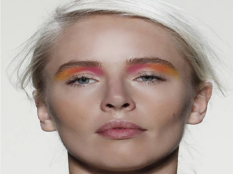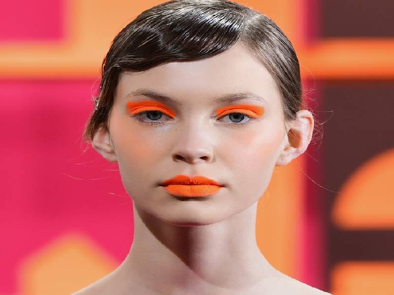 Monocromático neón. Los colores neón fueron en aumento durante el 2020, en este año se vieron looks con tonos iguales en el blush, ojos y labios en tonos naranjas encendidos, amarillos fluorescentes, verdes vibrantes, fucsias y morados.