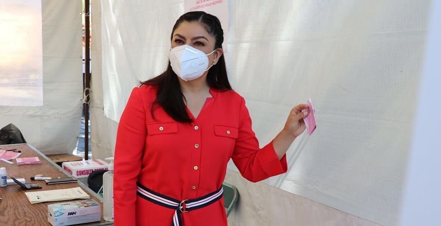 La edil de Morena, acompañada de su madre y hermana, emitió su voto en la casilla ubicada en el Museo del Ferrocarril, sobre la 11 norte y 12 poniente.