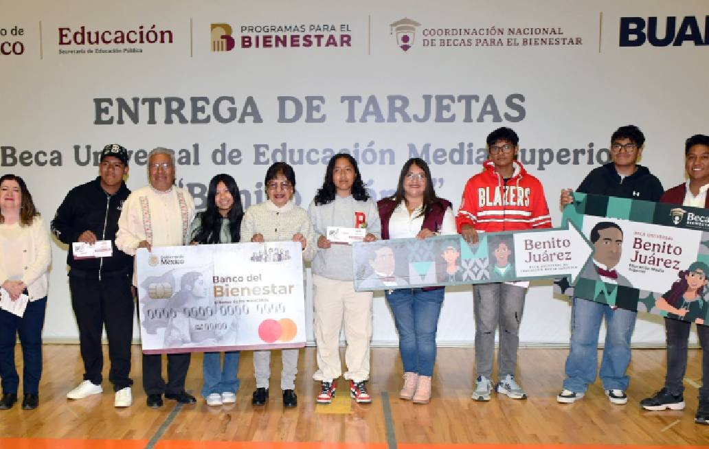 Por su parte, la coordinadora Estatal de Becas Bienestar, María Cecilia Calvillo Ángeles, informó la entrega de más de 2 mil 700 becas Universal Benito Juárez a estudiantes del nivel medio superior y dijo que hace unos meses personal de esta dependencia acudió a las instituciones para informar los beneficios de esta beca, cómo tramitarla, los documentos correspondientes y cómo activar su tarjeta.