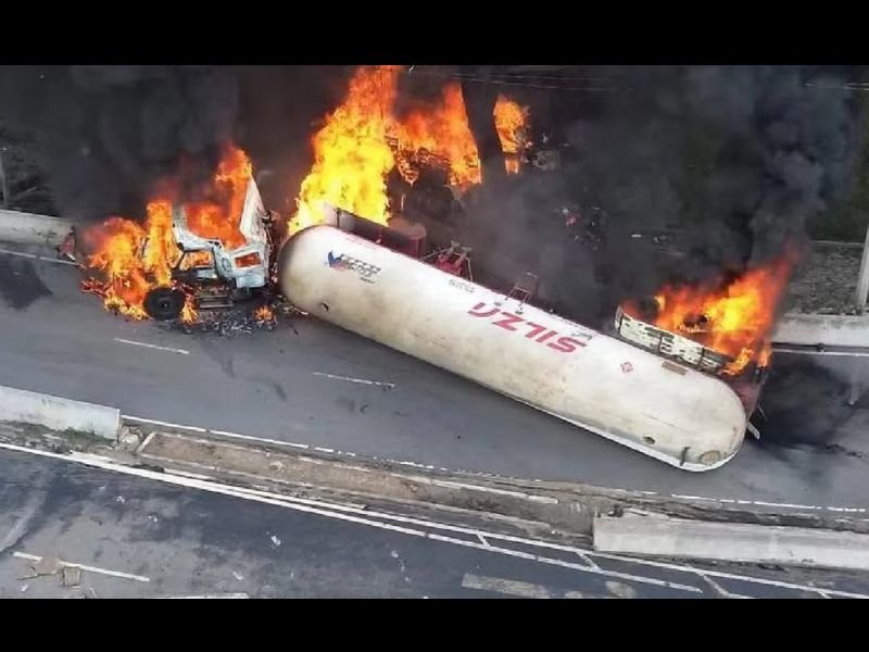 De inmediato comenzó a escapar el combustible. Lo que al principio parecía un incidente de tránsito común derivó en segundos en una explosión devastadora: una onda expansiva, un fogonazo de más de 30 metros de altura y una densa columna de humo negro que se podía ver desde varios puntos de la Ciudad de México.