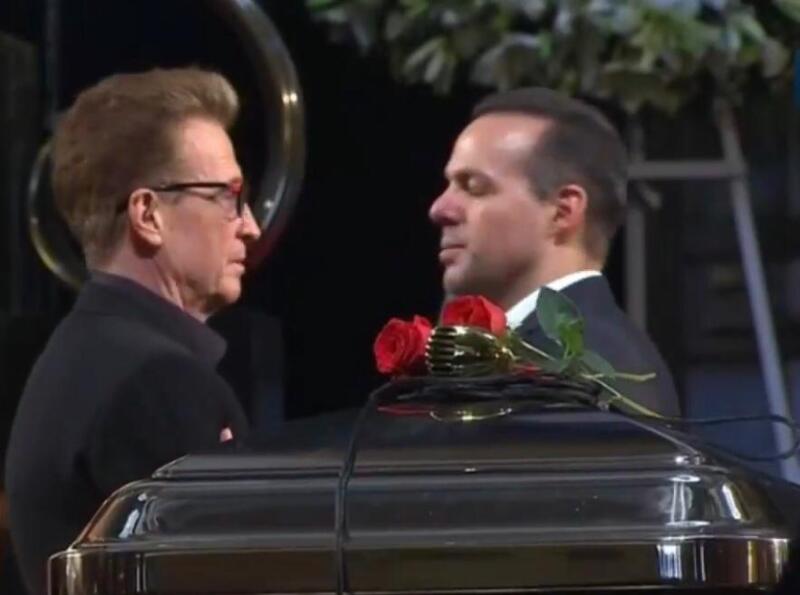 Otra de las interpretaciones fueron Regálame está noche, El triste, y un bis de La nave del olvido. Desde las 11 se permitió el acceso del público, una mujer decidió cantarle y fue pacientemente escuchada, una porra también sonó, con todo el respeto que amerita el momento. Minutos más tarde a la guardia de honor su sumó Alex de la Madrid, quién encarnó al intérprete en su serie.