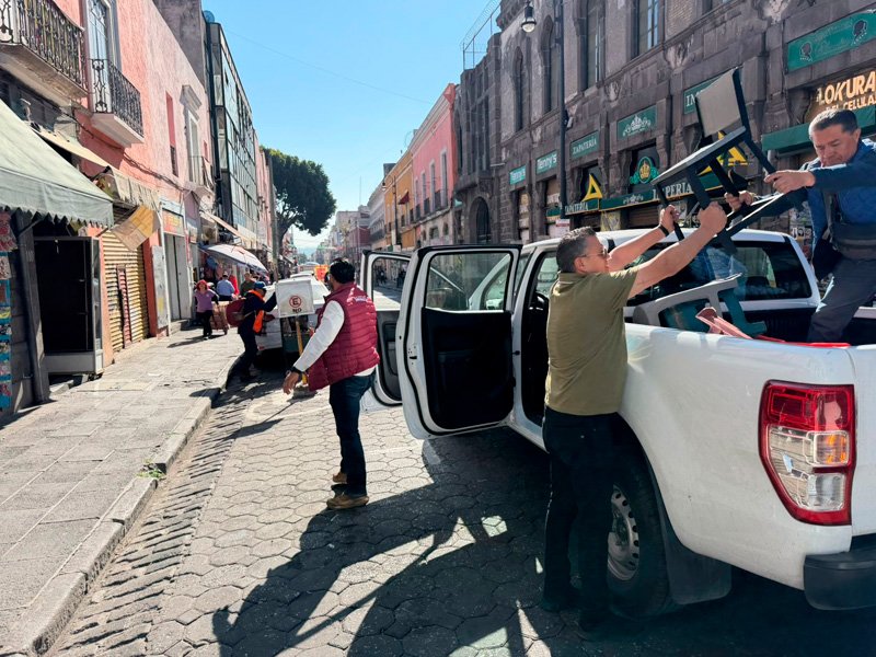 Como muestra de esta estrategia, la mañana de este día se desplegó un operativo en las principales calles del Centro Histórico, incluyendo la 8, 10 y 12 Poniente-Oriente, donde se realizaron acciones preventivas y de retiro de objetos utilizados para el apartado de lugares.