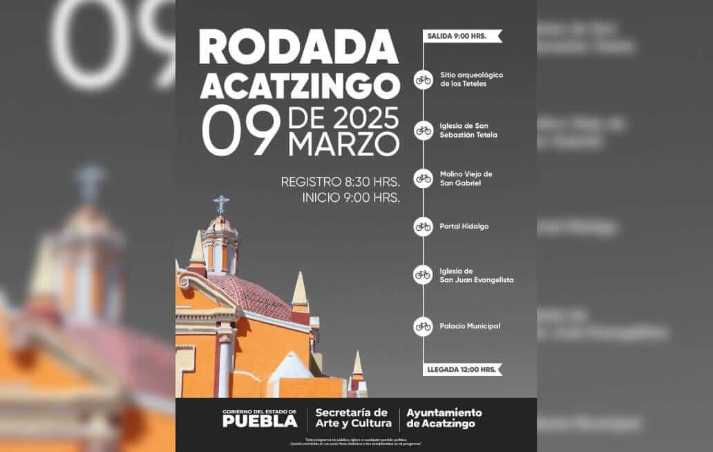 Se informa que en el municipio de Acatzingo, se llevará a cabo una rodada en bicicleta para visitar y conocer la historia de seis sitios de interés cultural de dicho municipio, a la cual podrá sumarse el público en general el próximo domingo 9 de marzo.