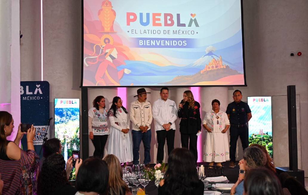 Durante la bienvenida, la secretaria presentó a la comitiva del estado y a los anfitriones, a los que acudieron como representantes del talento culinario, productivo y artesanal de Puebla. Participaron: Ángel Vázquez, chef poblano del restaurante Augurio; Victoria Serrano, cocinera tradicional de Cholula y empresaria de Mole Xalóztoc; Raúl Persino Díaz, maestro mezcalero y creador de la marca Mezcal Arráncame la Vida; Román Valderrábano, caficultor de Xicotepec y fundador de Café El Catador; Acitlali Azucena Ávila Francisco, artesana especializada en bordados de Cuetzalan e integrante del proyecto Yolkuali; y Consuelo Díaz, artesana y especialista en pintura en Talavera Uriarte.