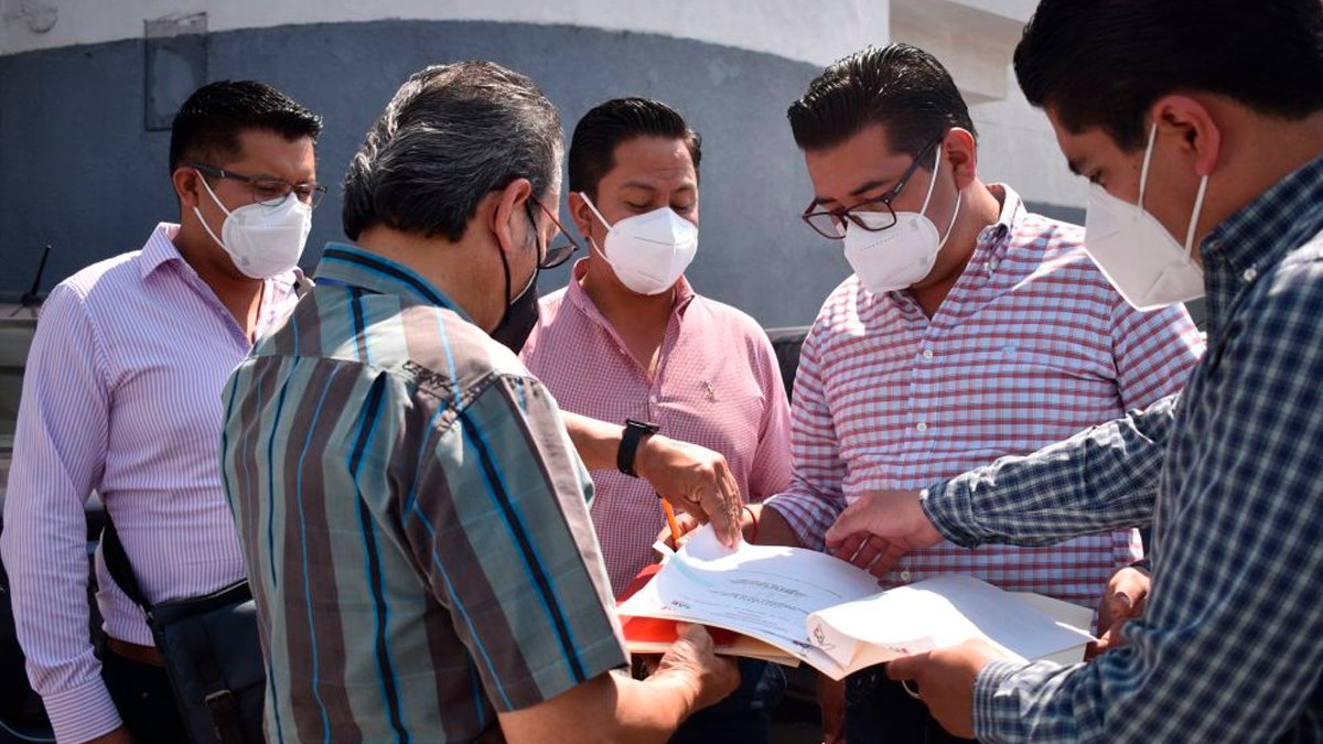 Misael Varela Peralta, encabeza la movilización con la exigencia de que Néstor Camarillo, presidente del PRI, explique las designaciones de candidatos a presidentes municipales, sin consulta a la militancia como ocurrió en Coronango y en otros municipios de la zona metropolitana donde los priistas no están de acuerdo con sumarse al PAN o al PRD.