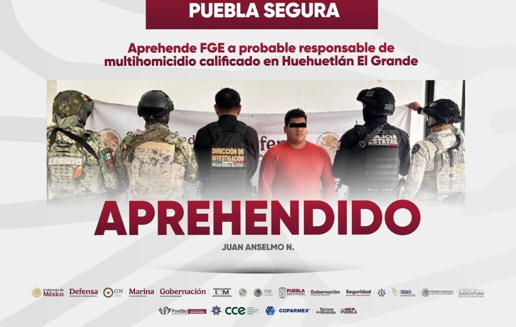 Fuerzas de seguridad de Puebla detuvieron a Juan Anselmo N., presunto implicado en delitos de alto impacto, reafirmando que no hay espacio para la impunidad.