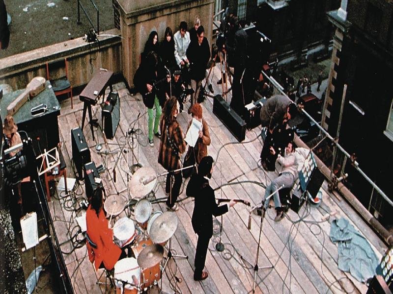 El momento elegido fue el mediodía del jueves 30 de enero de 1969. El lugar: la terraza de Apple, ubicada en el número 3 de Savile Row, en el centro de Londres. Hacía frío, y eso hizo que John (a quien acompañó Yoko) y George se tuvieran que enfundar en tapados femeninos. Ringo Starr (escoltado por su esposa de entonces Maureen) eligió un piloto de lluvia colorado. Paul, estoico, lucía un traje oscuro, la imagen es icónica rodeados de cables, equipos y asistentes, Los Beatles hicieron su última aparición en público.