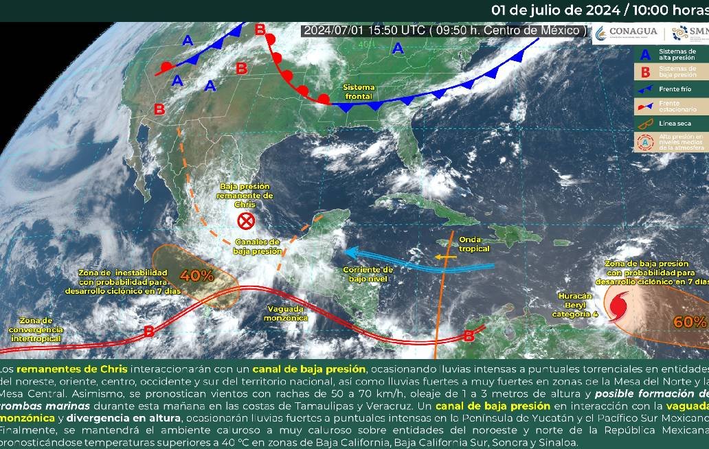 El SMN alerta sobre la llegada del huracán Beryl, que impactara dos veces en nuestro país, porque se sigue acercando a través del Atlántico, tras haber azotado Granada este lunes